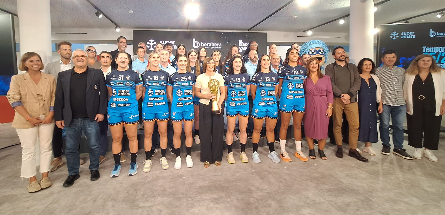 super amara eta Bera Bera eskubaloia bat eginda “harro” zegoela esan zuen Reirizek. “Pozik gaude tituluak irabazten jarraitzen duzuelako, baina zuena haratago doa, eta irabazi edo galdu, jarraitu beharreko adibidea zarete, eta harro gaude taldea babesten jarraitzeaz” argudiatu zuen.