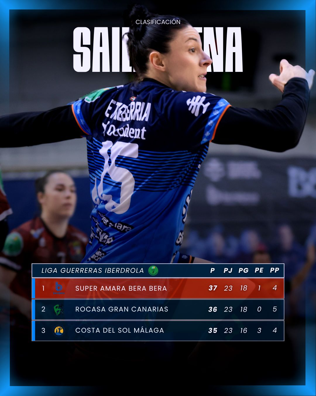 super amara Bera Berak Arrecifen lortutako garaipenari eta Rocasak Eldan jasotako porrotari esker, talde donostiarrak puntu batez gainditu du Guerreras Iberdrola Ligako lidertzara salto egiteko, Costa del Sol Malaga gertu, liga erregularra amaitzeko hiru jardunaldi bakarrik geratzen direnean.